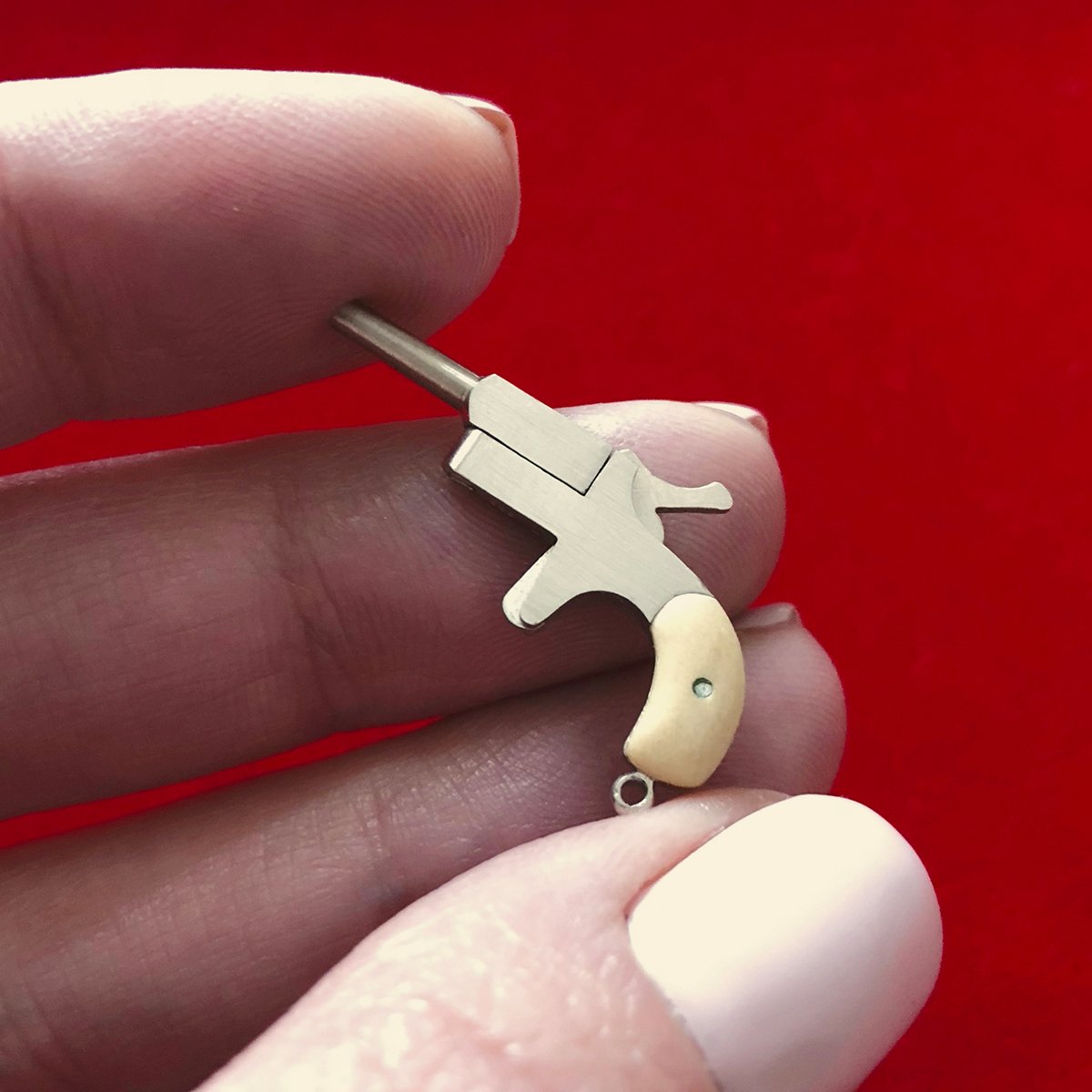 Tiny golden Derringer exactly as pictured. Excellent quality. Fast shipping. Very pleased with this item. Perfect!